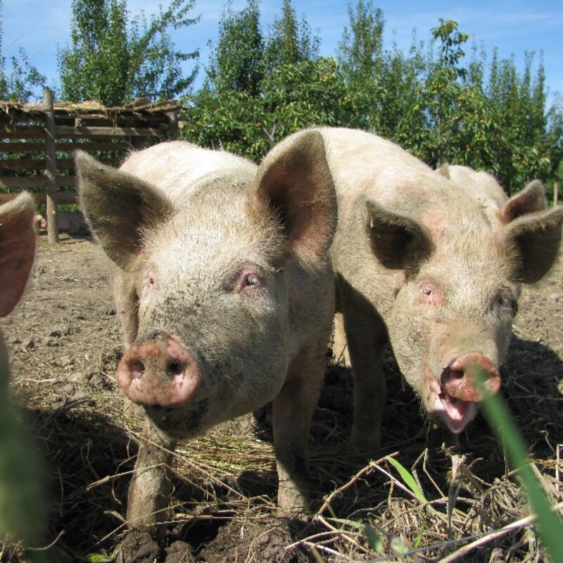On pasture, complemented with sprouted grains. All natural, grass and grains fed. Ham and bacon smoked naturally, giving them an authenthic, rich smoky flavor.