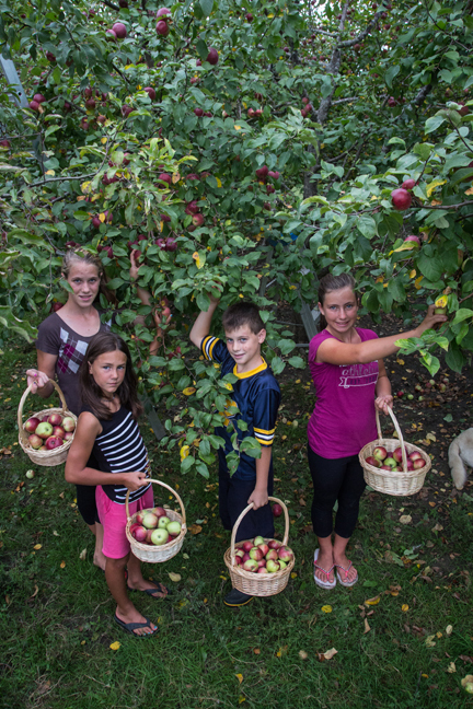 The workshop 'L'introduction à la biodynamie' given at l'Armoire aux herbes, strongly pushed us in that direction but it was the 1999 summer gatering at La Butte Magique that really kicked off the practice of biodymalic ways on our farm. Than in 2005, the orchard is opened to the public for self picking and we started the transformation of apples into juice.