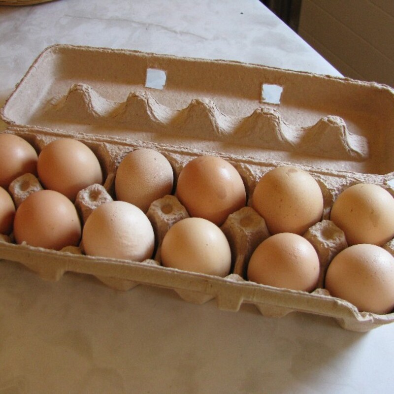 Fresh eggs from our free range chickens. Hens and roosters are free range and are fed with organic, sprouted grains. Our happy flock has plenty of room to roam, eat bugs and grass.