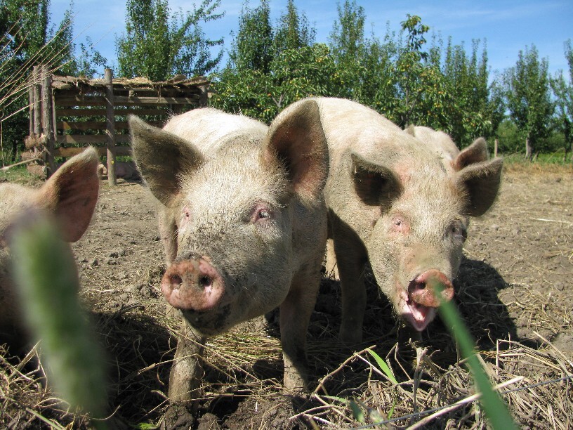 On pasture, complemented with sprouted grains. All natural, grass and grains fed. Ham and bacon smoked naturally, giving them an authenthic, rich smoky flavor.